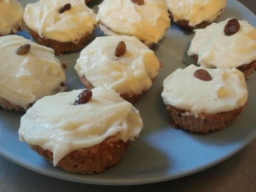 For David's birthday a couple of weeks ago, I offered to make him birthday cupcakes from my most-used cookbook, Vegan Cupcakes Take Over the World. He asked for carrot cake cupcakes (original recipe here). They turned out to be so delicious, I made two extra batches over the next week.